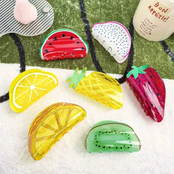Fruit-Themed Acrylic Hair Clips Set – Lemon, Strawberry, Watermelon & Pineapple