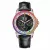 Men’s Moonphase Automatic Watch with Colorful Diamonds & Black Leather Strap
