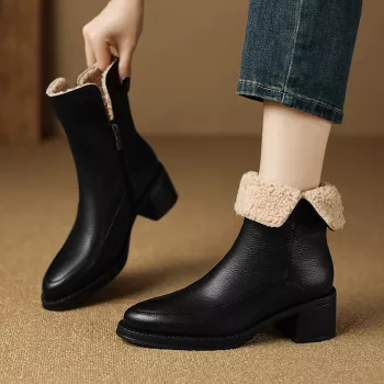 Genuine Leather Ankle Boots for Women with Velvet Lining and Side Zipper